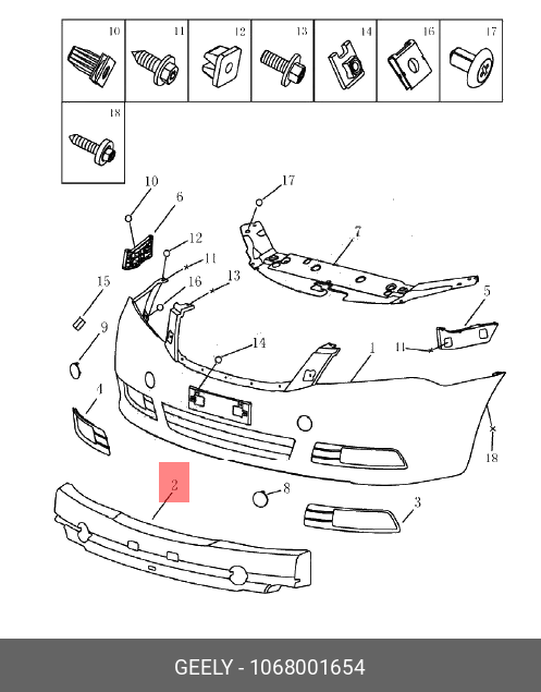 1068001654 GEELY Абсорбер бампера переднего (седан) Geely Emgrand EC7, шт
