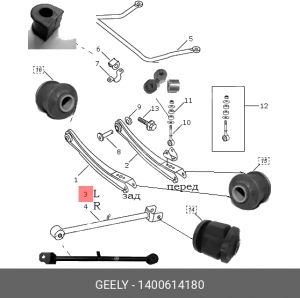 1400614180 GEELY Рычаг задний продольный левый Geely Otaka, шт