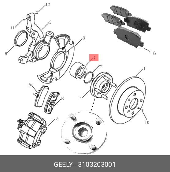 3103203001 GEELY Подшипник ступицы передней Geely Otaka, шт