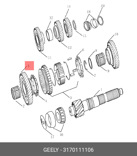 3170111106 GEELY Шестерня 1 передачи вторичного вала Geely MK