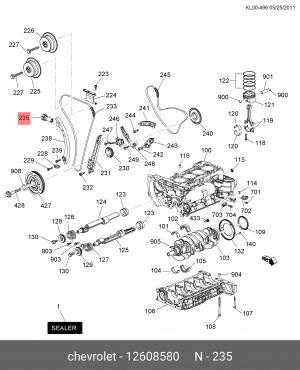 12608580 GENERAL MOTORS Натяжитель цепи ГРМ ECT0524 Opel A20NH, A20NFT, A20NET, A24XF, A24XE 12608580