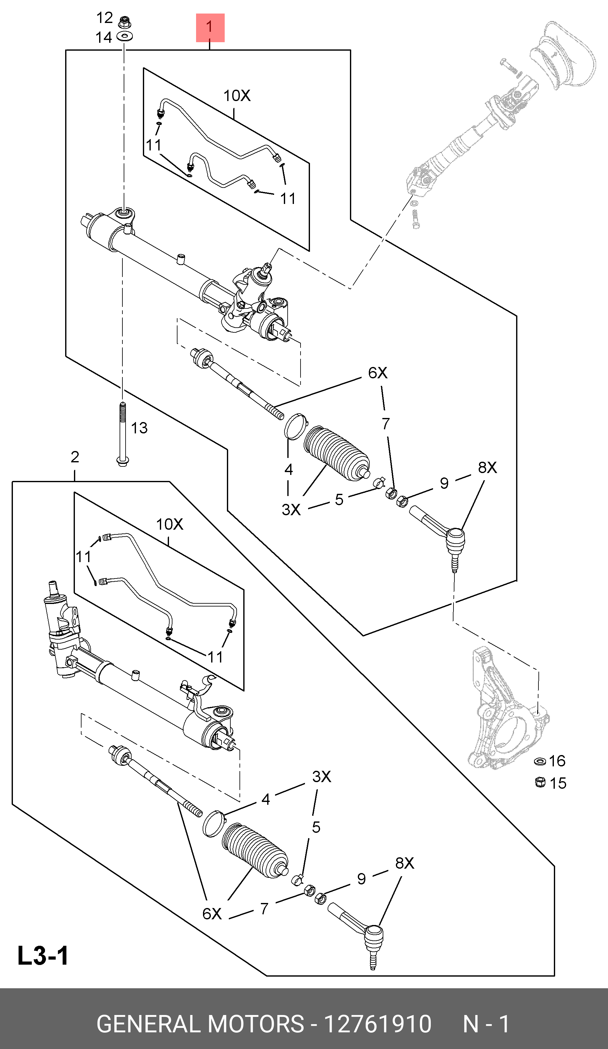 12761910 GENERAL MOTORS Рулевая рейка с тягами гидравлическая r23051nw