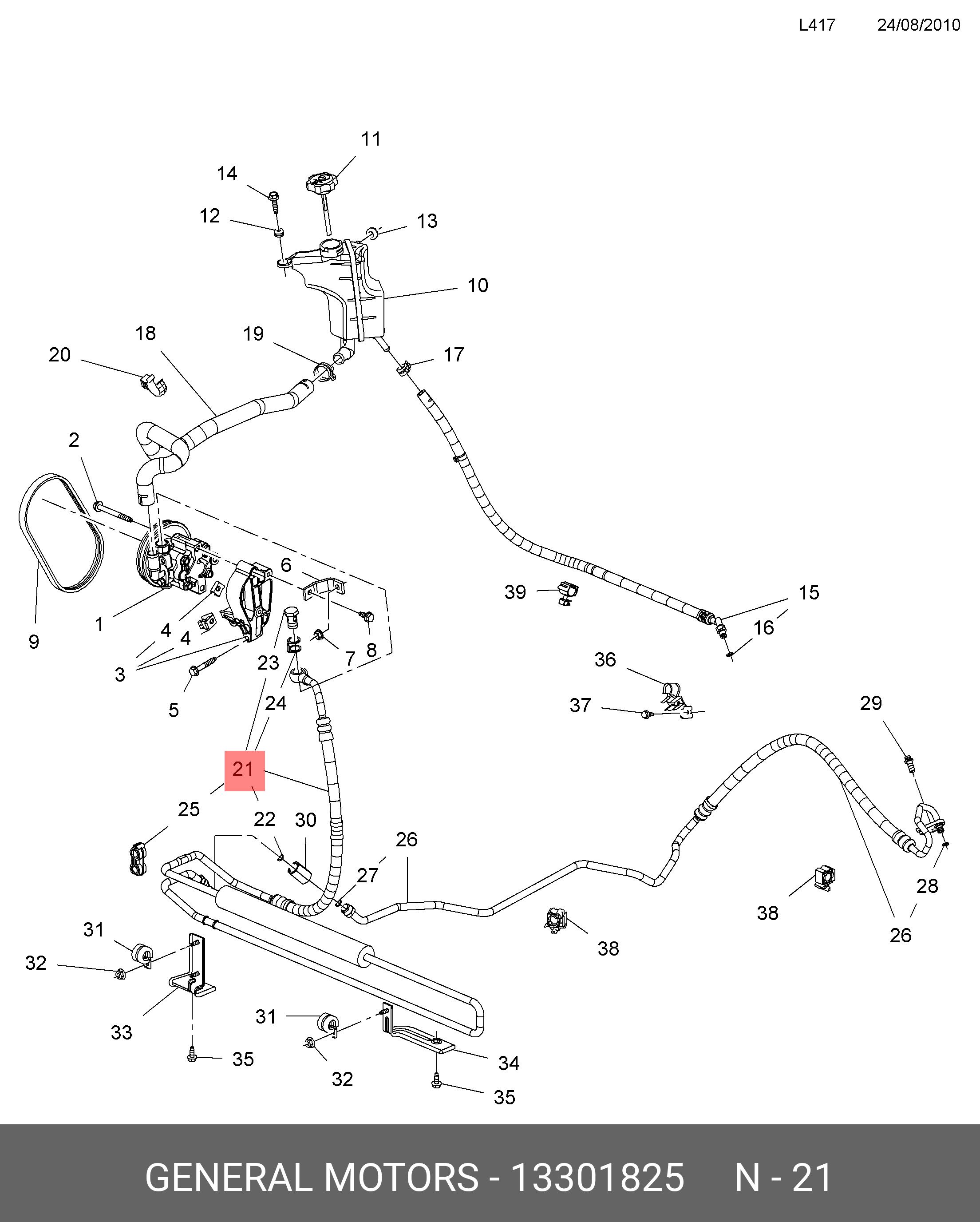 13301825 GENERAL MOTORS Напорный шланг от насоса к рейке hph0090