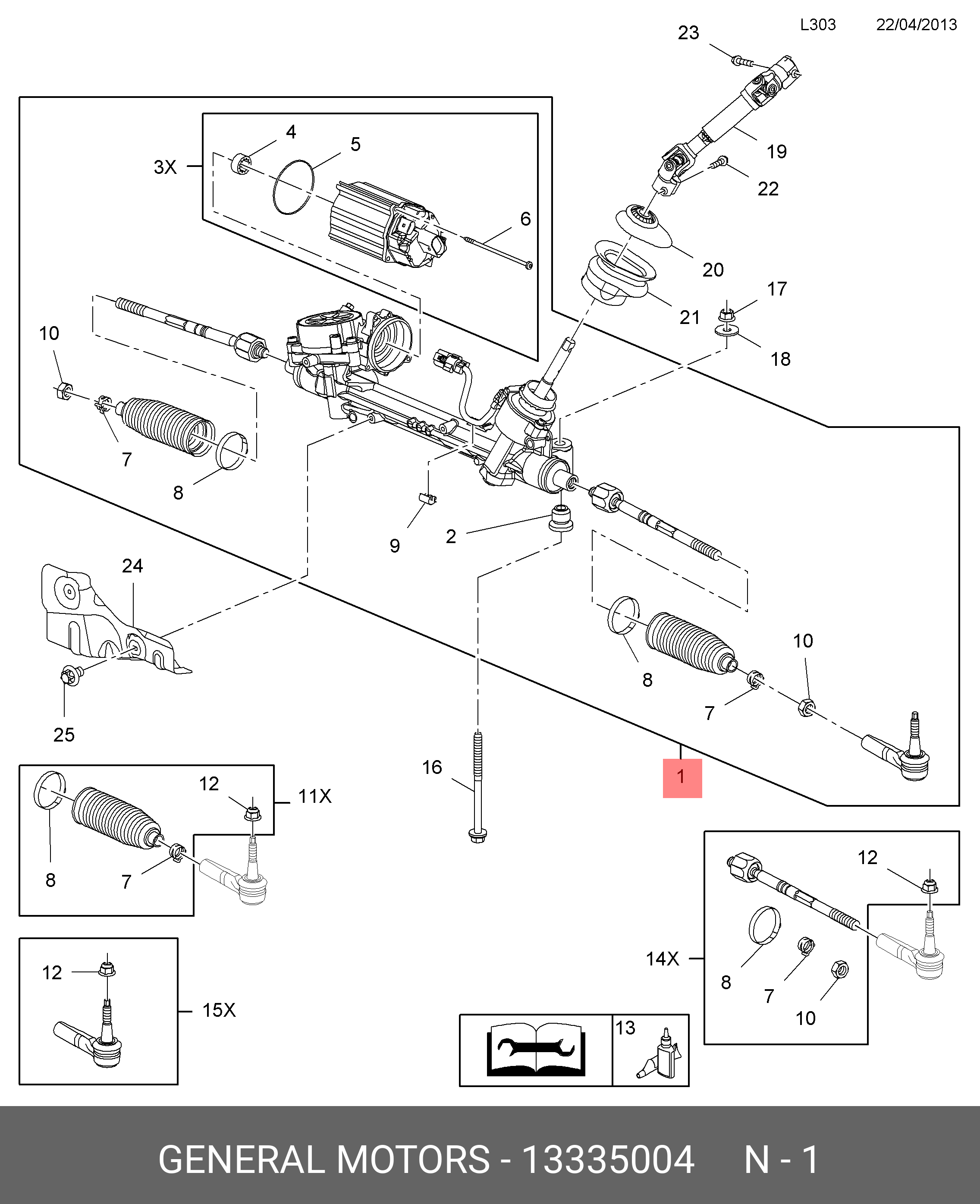 13335004 GENERAL MOTORS Рулевая рейка с тягами электрическая e41051rb