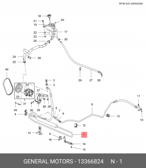 13366824 GENERAL MOTORS Напорный шланг от насоса к рейке hph0090