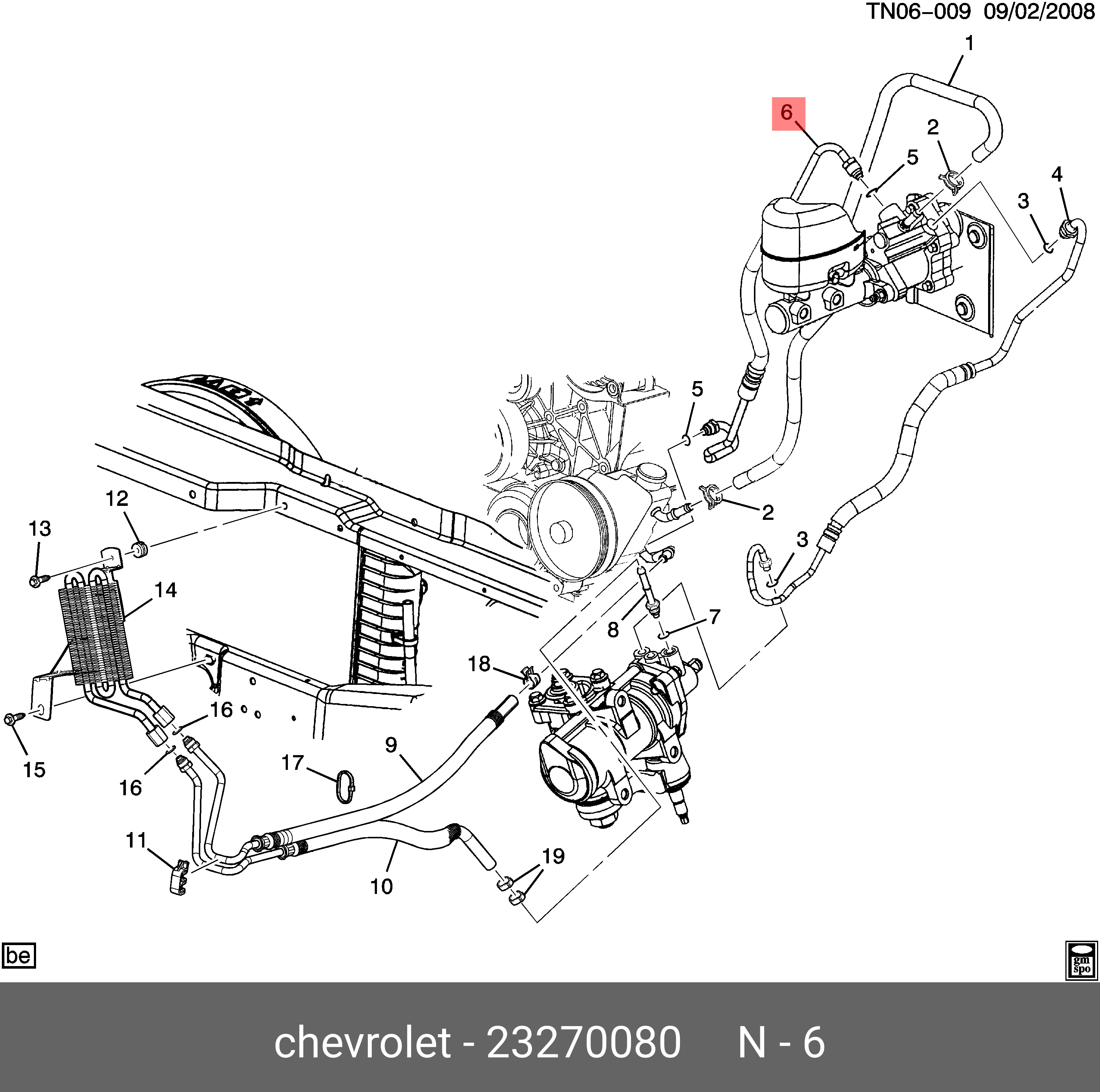 23270080 GENERAL MOTORS Напорный шланг от насоса к рейке hph0163