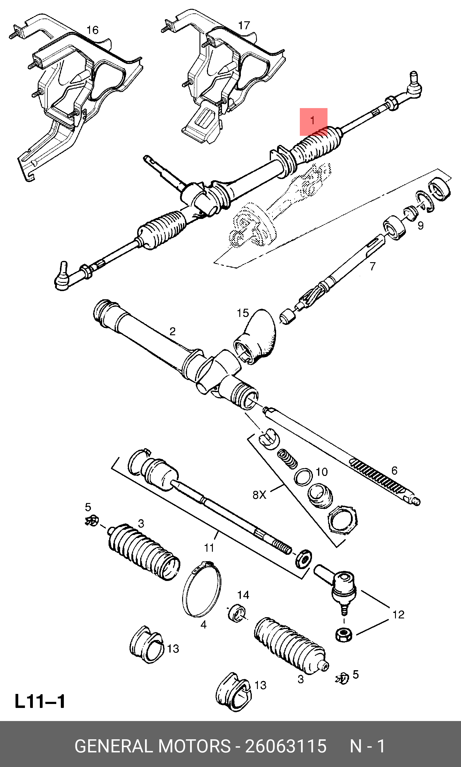 26063115 GENERAL MOTORS Рулевая рейка механическая m50410nw