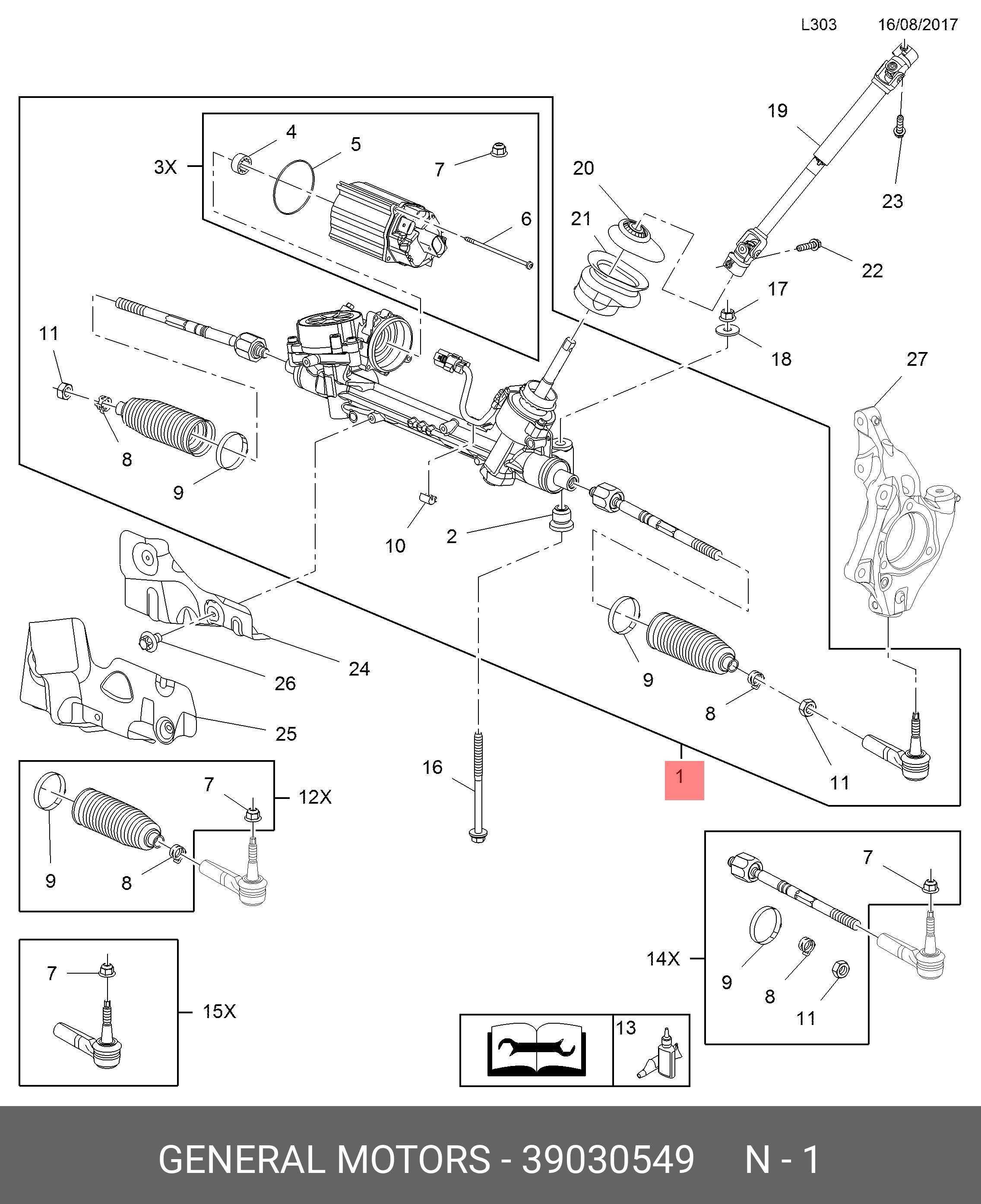 39030549 GENERAL MOTORS Рулевая рейка с тягами электрическая e42571rb