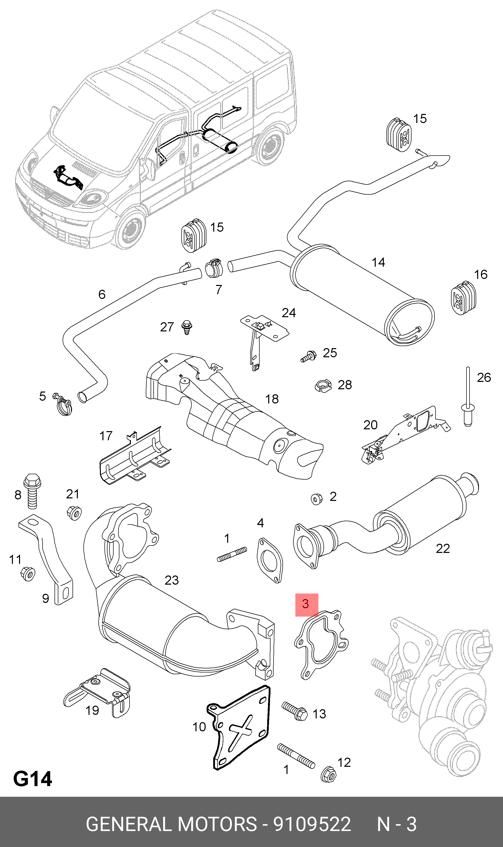 9109522 GENERAL MOTORS Комплект прокладок турбокомпрессора mfz0044sl