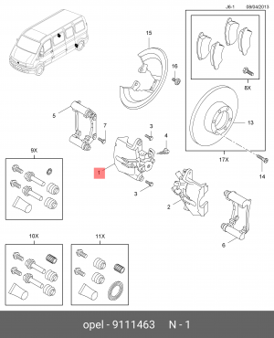 9111463 GENERAL MOTORS Суппорт тормозной bnz1145zw