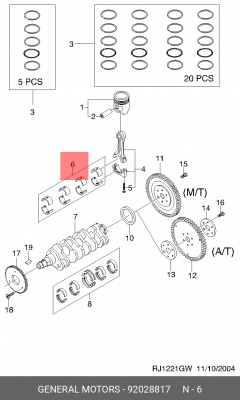 92028817 GENERAL MOTORS Вкладыши шатунные (STD) (К-т) 92028817