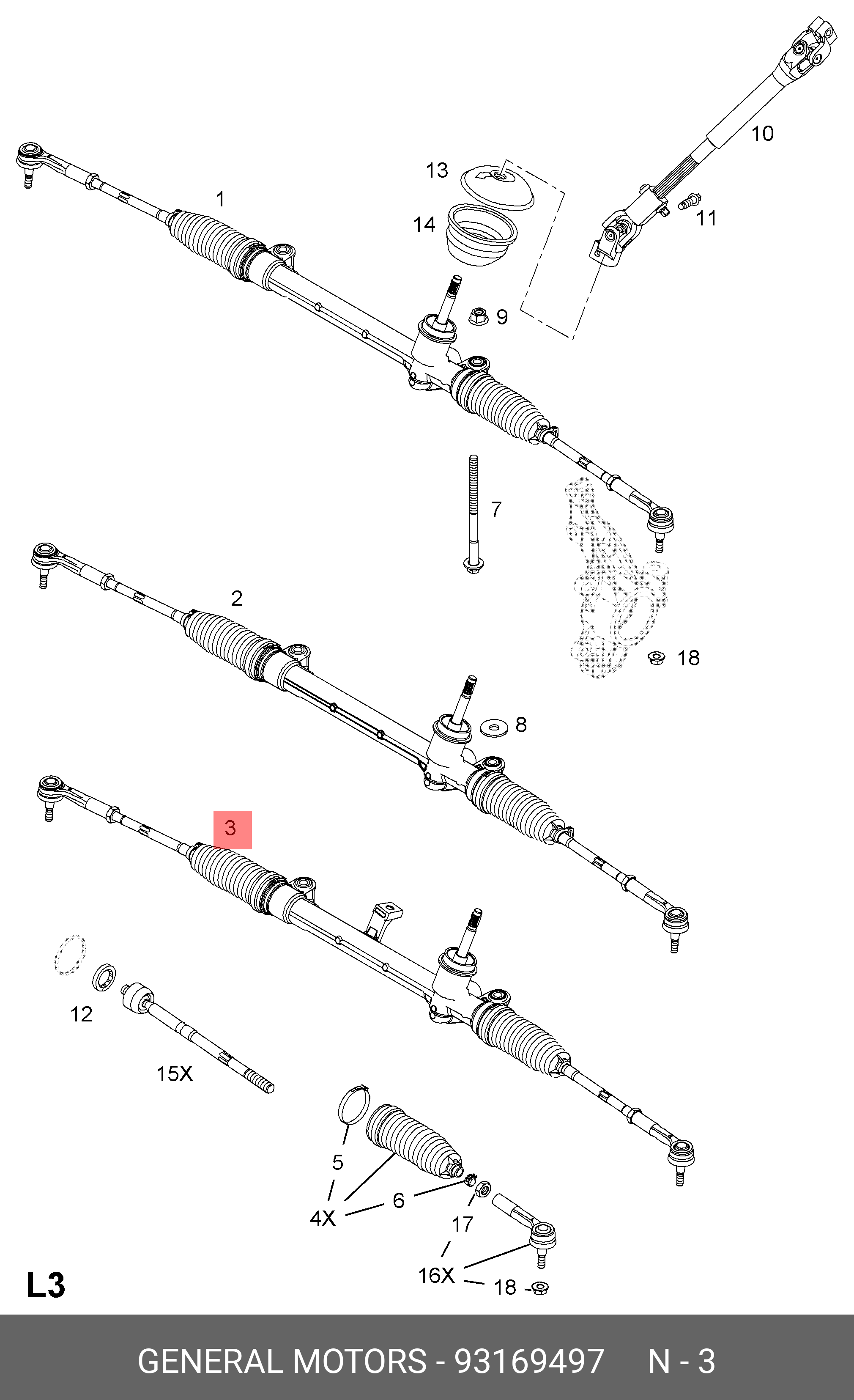 93169497 GENERAL MOTORS Рулевая рейка с тягами механическая m50631nw