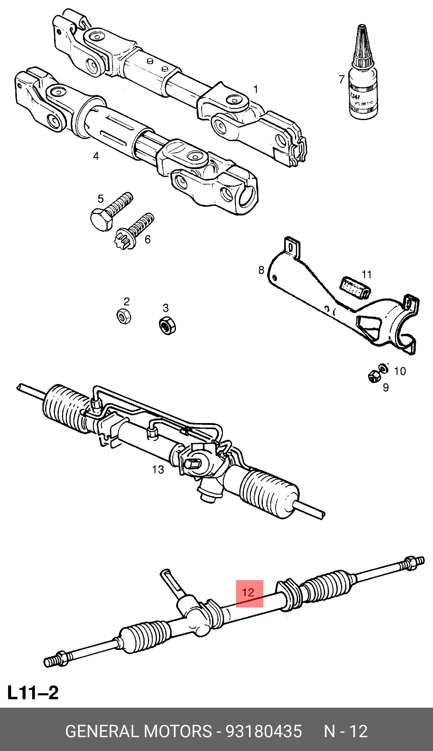 93180435 GENERAL MOTORS Рулевая рейка механическая m50410nw