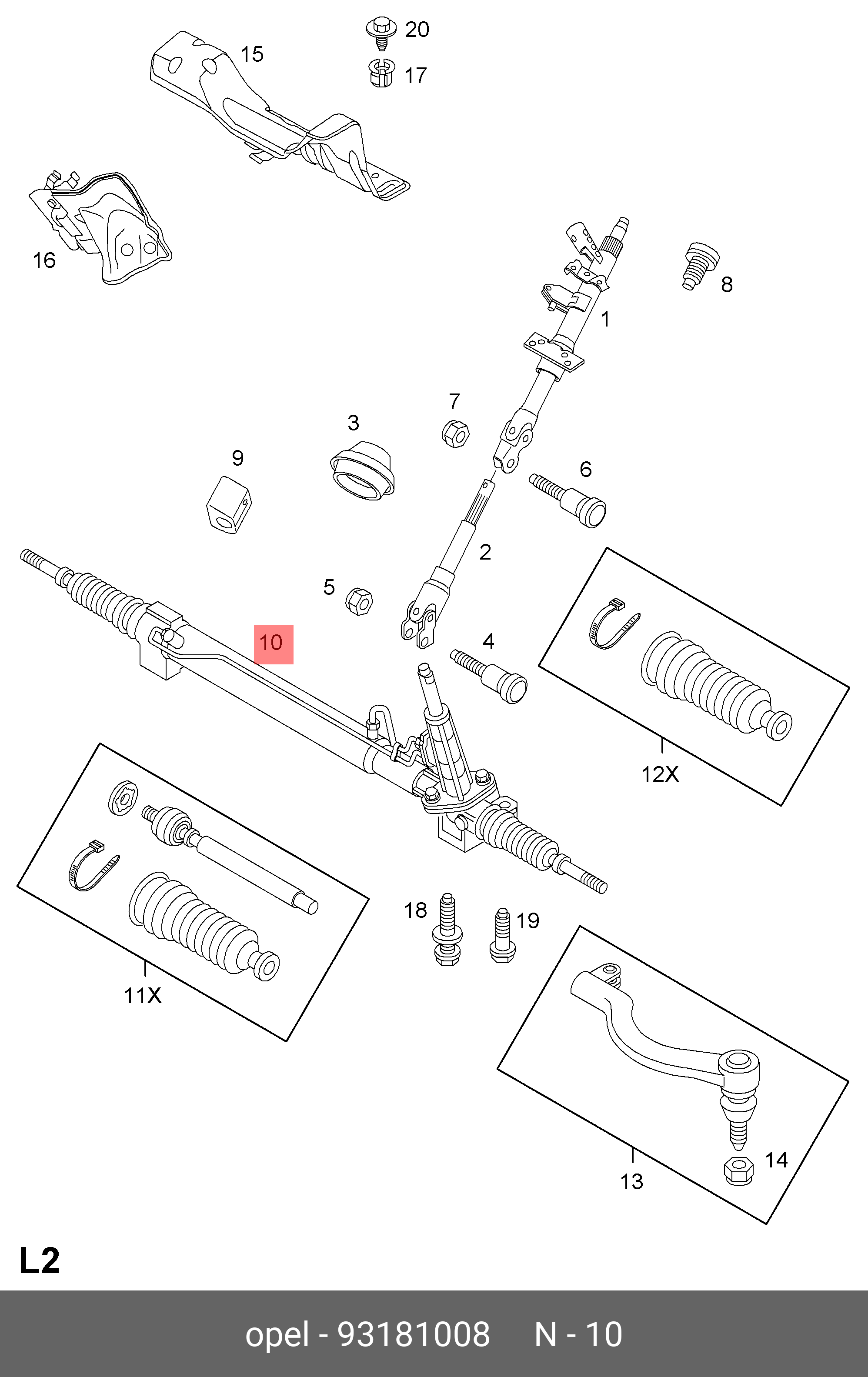 93181008 GENERAL MOTORS Рулевая рейка с тягами гидравлическая r21461nw