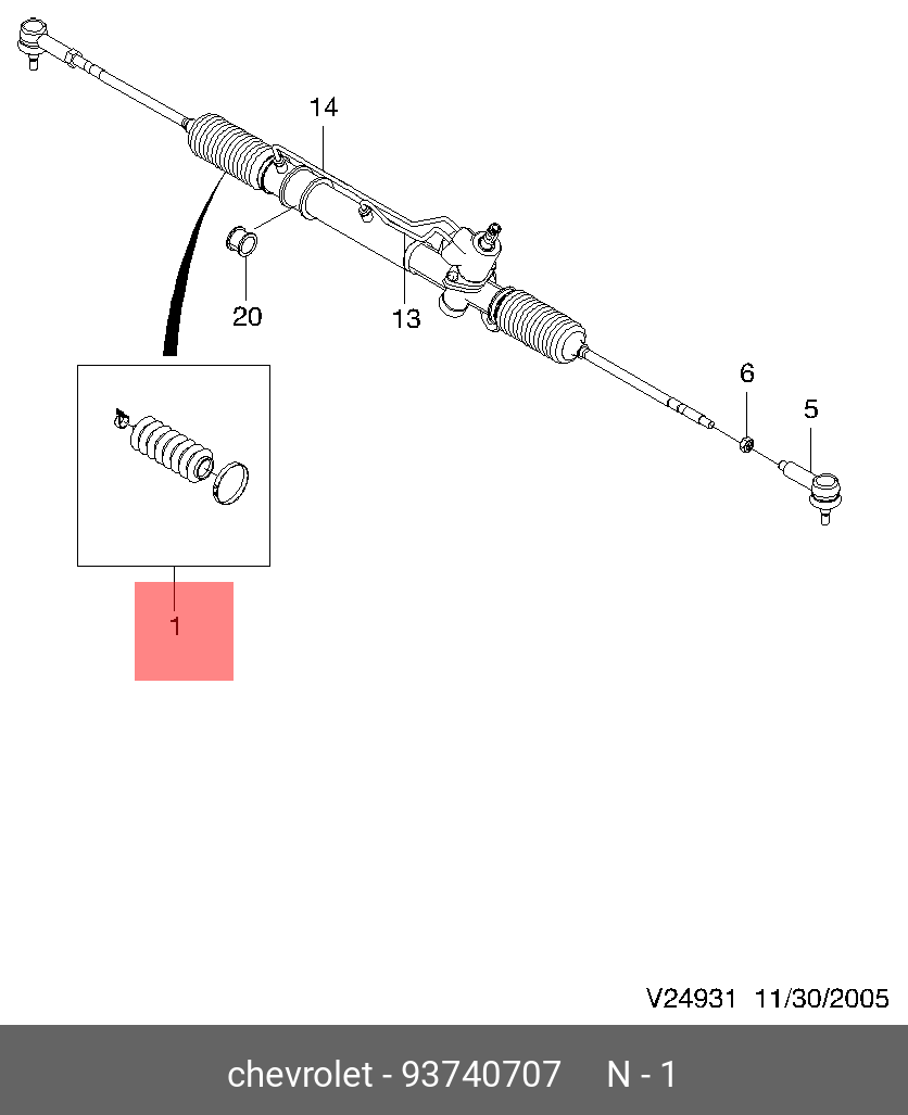 93740707 GENERAL MOTORS Пыльник рулевой рейки rdz0510mg