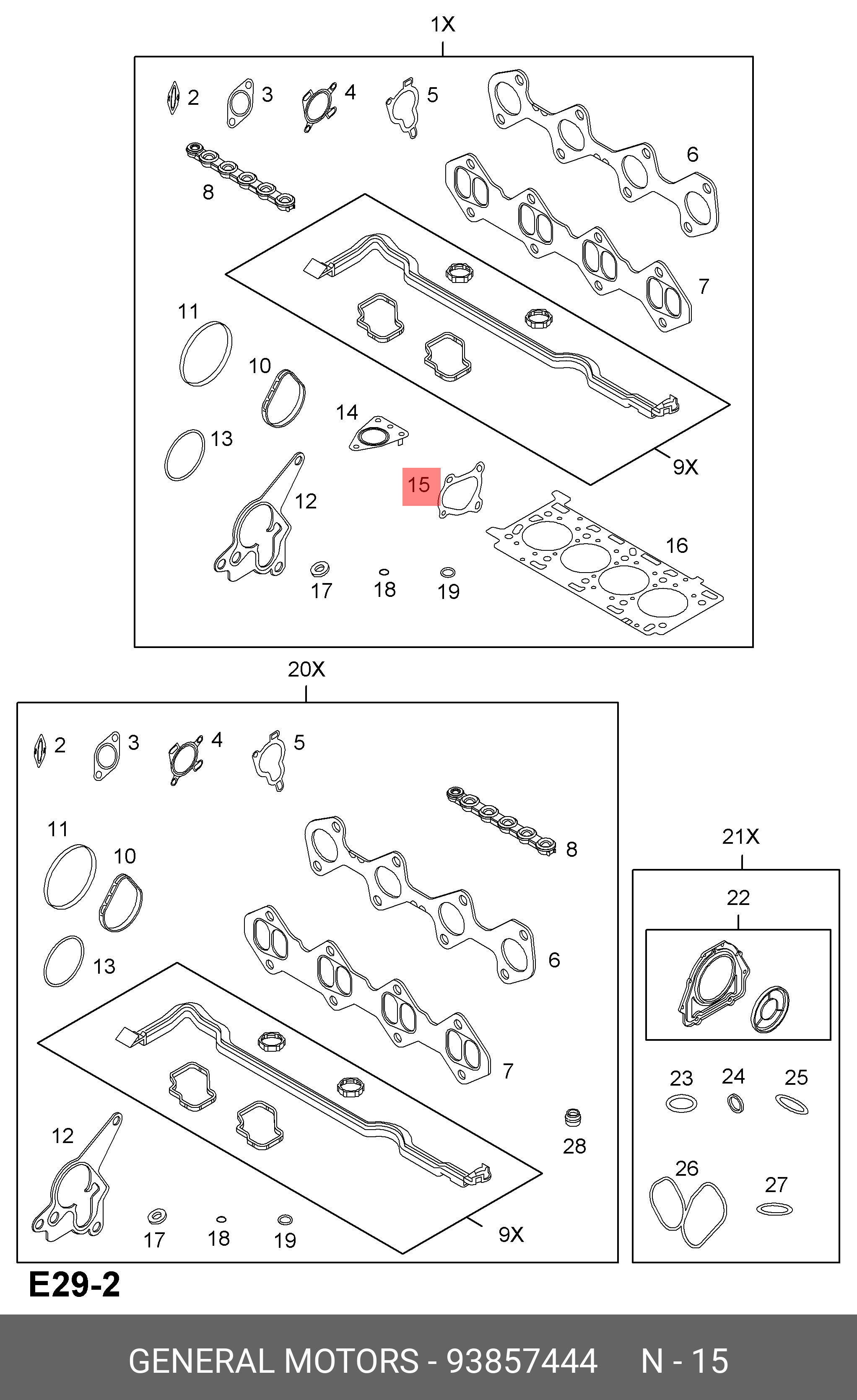 93857444 GENERAL MOTORS Комплект прокладок турбокомпрессора mfz0131sl