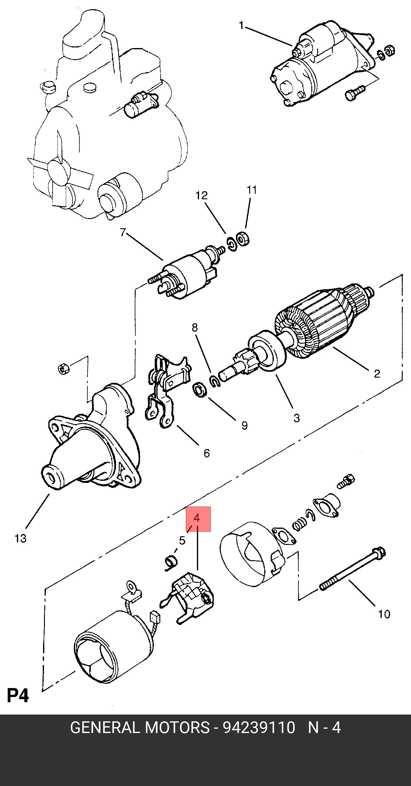 94239110 GENERAL MOTORS Щеткодержатель стартера shn2559mg