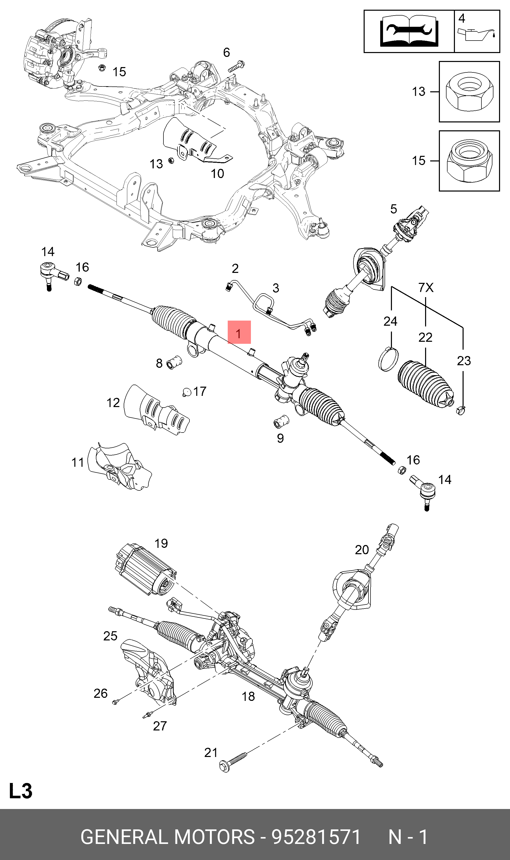 95281571 GENERAL MOTORS Рулевая рейка с тягами гидравлическая r26951nw
