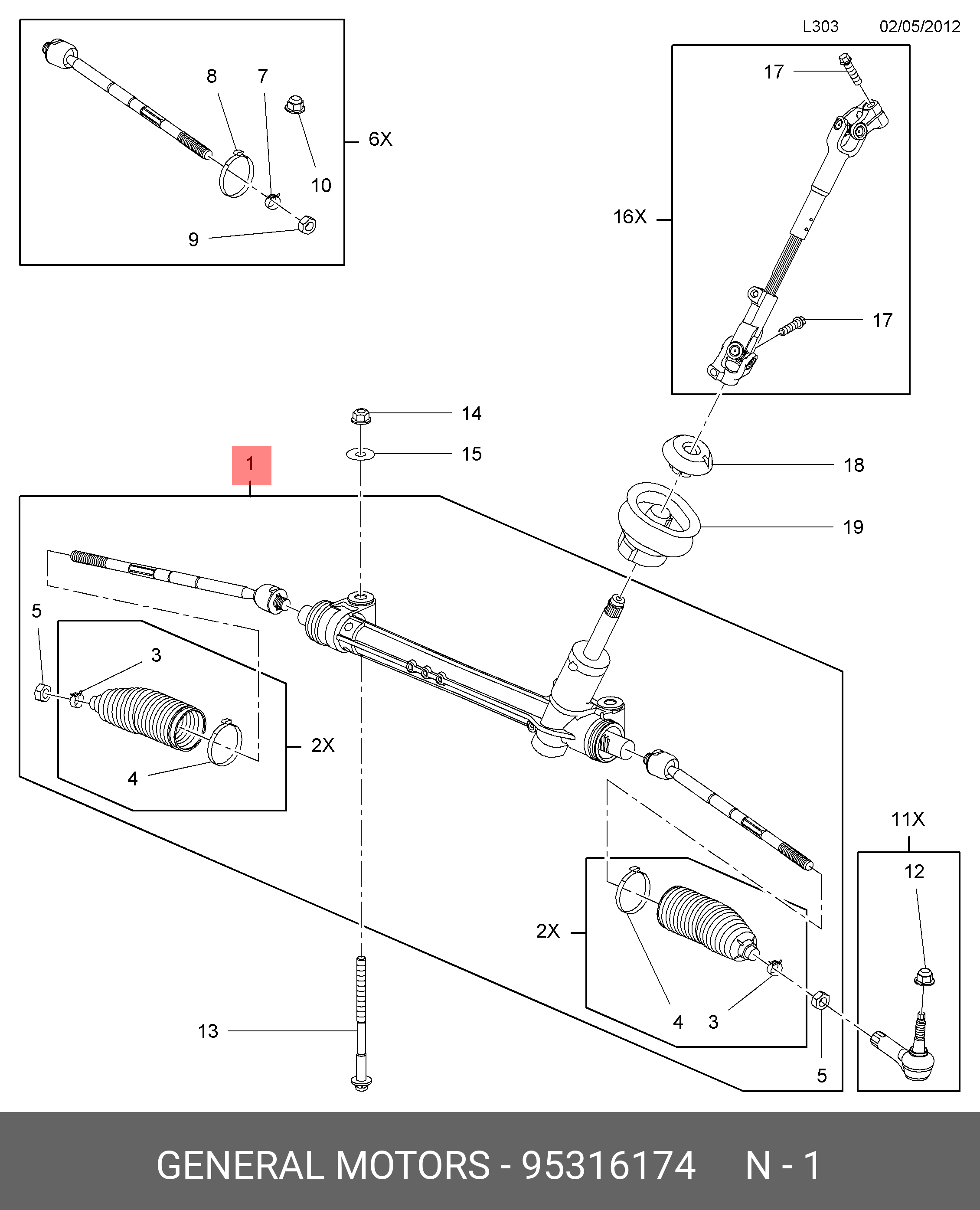 95316174 GENERAL MOTORS Рулевая рейка с тягами механическая m51121nw