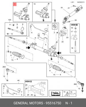 95516750 GENERAL MOTORS Рулевая рейка с тягами гидравлическая r20401nw