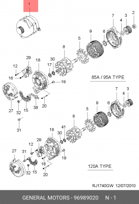 96989020 GENERAL MOTORS Генератор 12v, 85a, 6-руч, ima108483