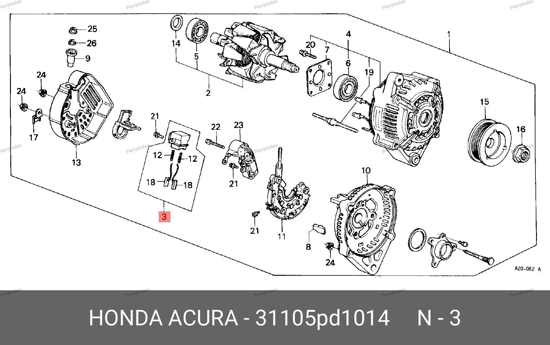 31105PD1014 HONDA Щеткодержатель генератора hn2084a