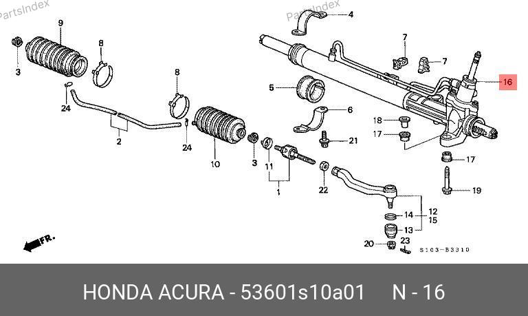 53601S10A01 HONDA Рулевая рейка с тягами гидравлическая r22921nw