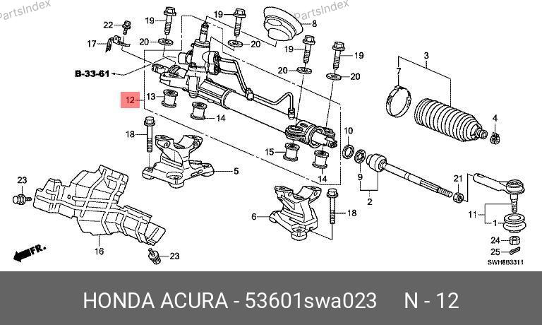 53601SWA023 HONDA Рулевая рейка с тягами гидравлическая j21101nw