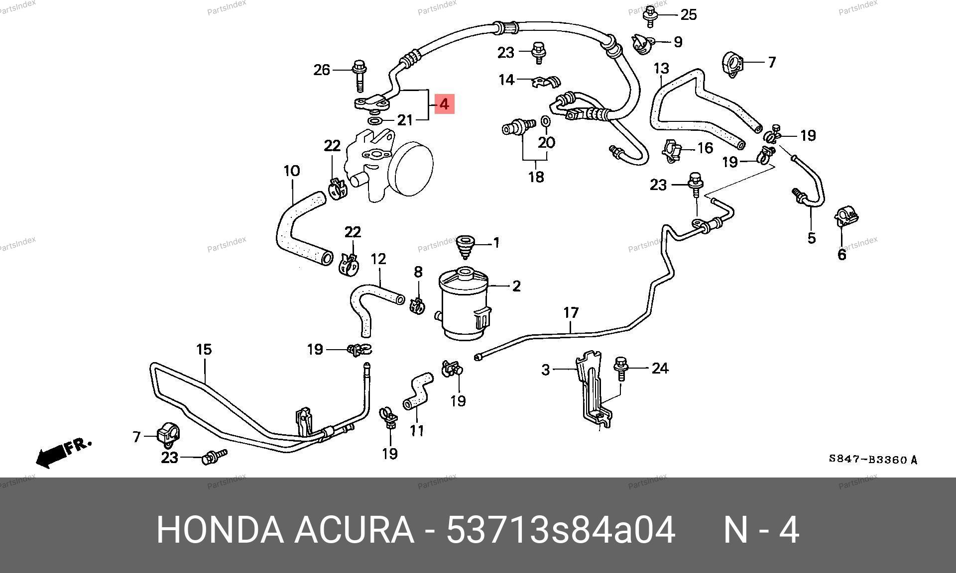 53713S84A04 HONDA Напорный шланг от насоса к рейке hph0291