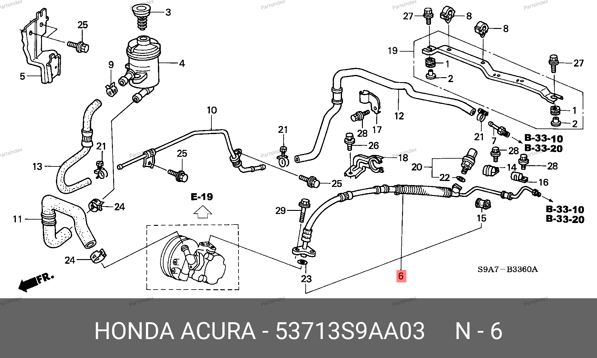53713S9AA03 HONDA Напорный шланг от насоса к рейке hph0049