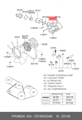 25100-42540 HYUNDAI KIA Помпа водяная kwz1285jk