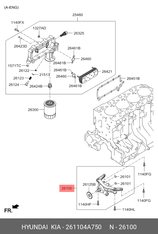 261104A750 HYUNDAI KIA Насос масляный kwz1862eb