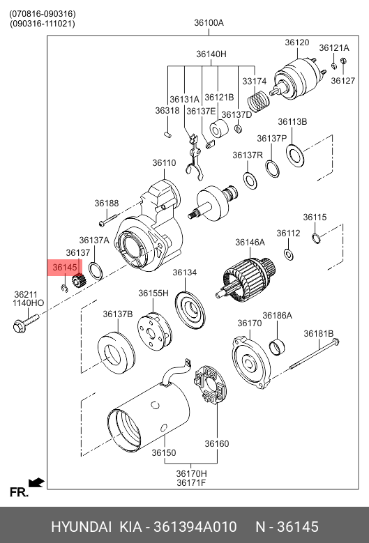 361394A010 HYUNDAI KIA Бендикс стартера 315n10242z