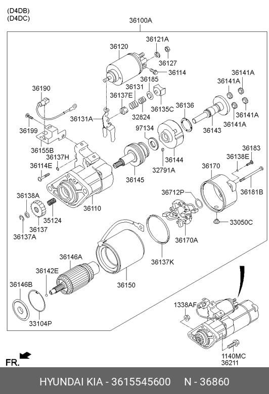 3615545600 HYUNDAI KIA Втягивающее реле стартера маленькое ssa7500he