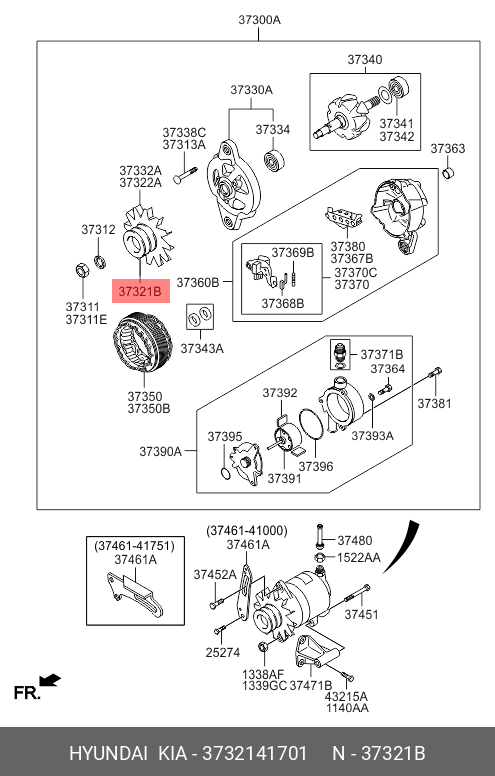 3732141701 HYUNDAI KIA Шкив генератора apa1387lk