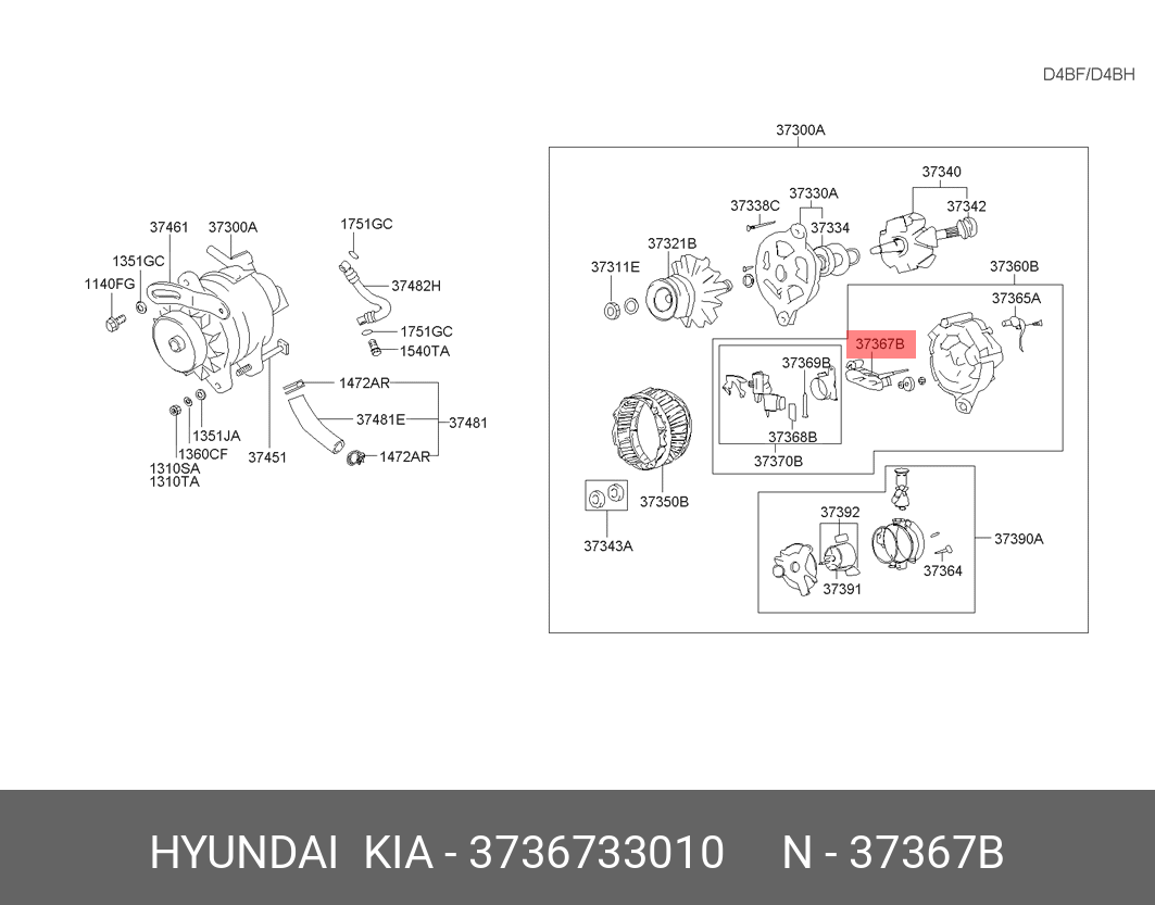 3736733010 HYUNDAI KIA Диодный мост генератора em0040a