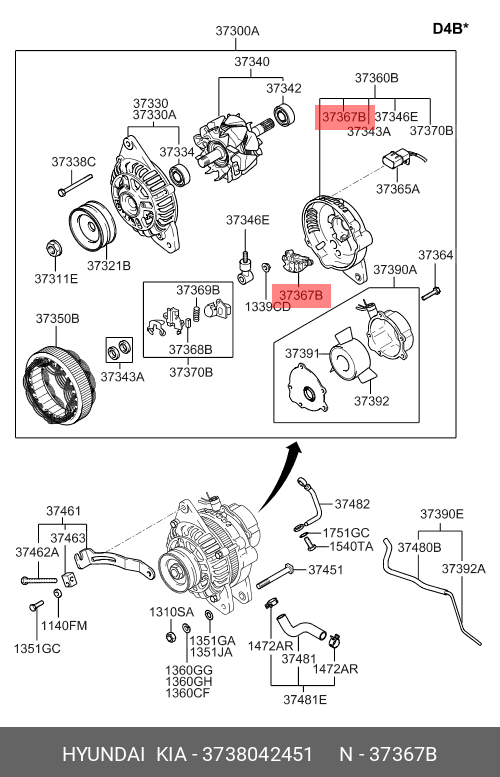 3738042451 HYUNDAI KIA Диодный мост генератора em0052b