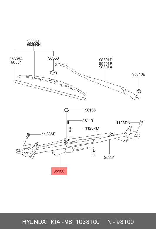 9811038100 HYUNDAI KIA Мотор стеклоочистителя ddz1046tk