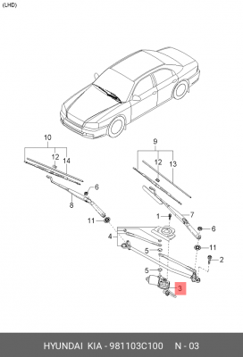 981103C100 HYUNDAI KIA Мотор стеклоочистителя ddz1046tk
