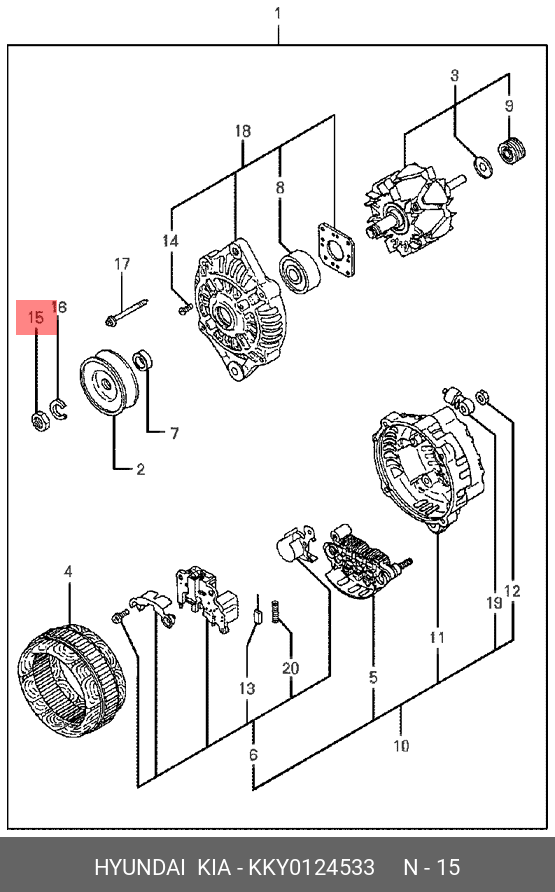 KKY0124533 HYUNDAI KIA Гайка генератора azm2080dd