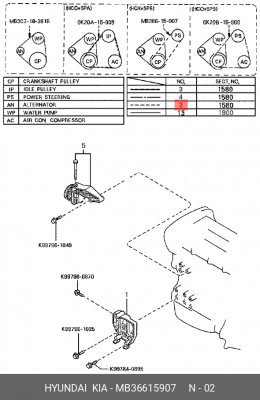 MB366-15907 HYUNDAI KIA Ремень поликлиновой rrb1173pg