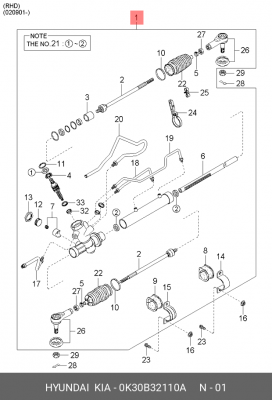 0K30B32110A HYUNDAI Рулевая рейка с тягами гидравлическая r21941nw