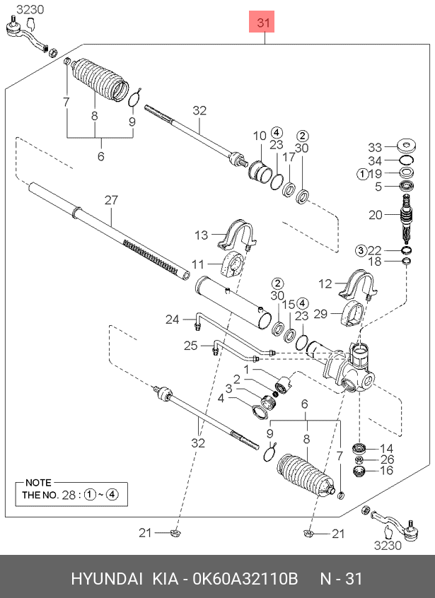 0K60A32110B HYUNDAI Рулевая рейка с тягами гидравлическая r28801nw