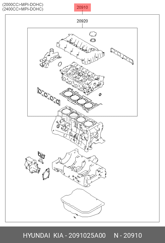 2091025A00 HYUNDAI Комплект прокладокДВСG4KA/G4KD
