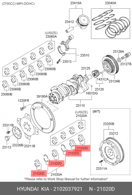 2102037921 HYUNDAI Вкладыши коренные 0.50(8шт)G6BA/G6EAAZERA,COUPE,SANTAFE,SONATA,TI