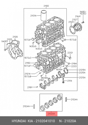 2102041010 HYUNDAI Вкладыши коренные EMB0921050 Mitsubishi 4D30/4D31/4D32/D4AF/D4DB/D4DC ME999384 0