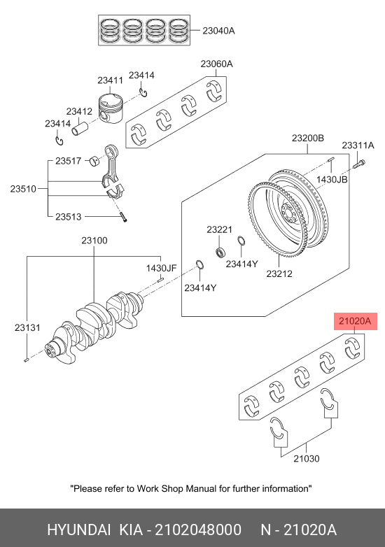 2102048000 HYUNDAI Вкладыши HYUNDAI HD65,78,БОГДАН дв.D4GA коренные d+0.00 комплект MOBIS