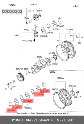 210204A914 HYUNDAI Вкладыши коренные Комплект 10штSTDD4CB/STAREX/PORTER/H-1/SORENTO