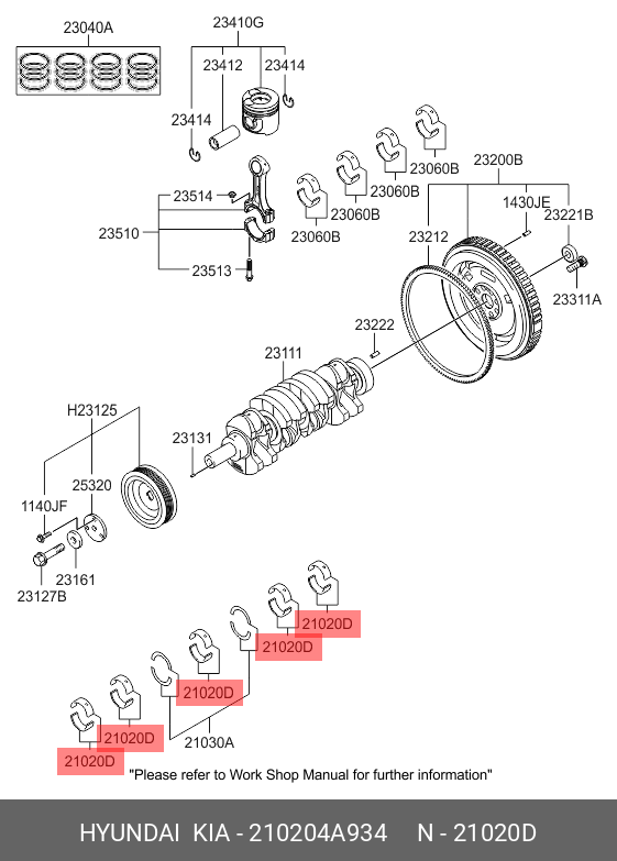 210204A934 HYUNDAI Вкладыши коренные Комплект 10штSTDD4CB/STAREX/PORTER/H-1/SORENTO