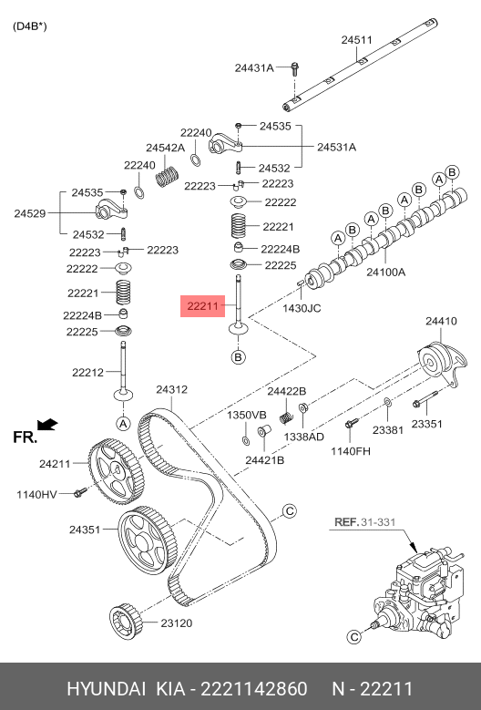 2221142860 HYUNDAI Клапан впускной HYUNDAI Porter дв.D4BF OE